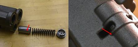 康明斯Cummins QSK23發(fā)動(dòng)機(jī)在每個(gè)機(jī)油濾清器內(nèi)都有一個(gè)旁通閥,設(shè)定開(kāi)啟壓力為 241 kp (35PSI).濾清器阻力過(guò)大時(shí),旁通閥前后壓差使其克服彈簧力開(kāi)啟。這使得機(jī)油旁通流過(guò)濾清器,向發(fā)動(dòng)機(jī)提供機(jī)油