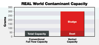 潤滑油中污染物積聚后所產(chǎn)生的油泥會導(dǎo)致發(fā)動機(jī)磨損極速加劇。 而在實驗室以外的實際環(huán)境中,油泥將是最常見的大敵。 康明斯濾清系統(tǒng)已通過實際環(huán)境中的測試,而非簡單的臺架測試證實 Venturi™ 組合的旁通多層疊片可有效清除有害油泥,并使?jié)櫥拖到y(tǒng)獲得比僅使用全流量合成濾清器時更高的過濾效率。 事實上,Venturi™ 組合的去污能力可達(dá)單獨的全流量合成濾清器的三倍。
