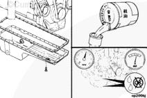 安裝新密封墊和油底殼。參考步驟 007-025。擰緊油底殼放油螺塞。