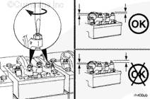 這種調(diào)節(jié)可從任一氣門設(shè)置標(biāo)記開始。在插圖中,假設(shè) 1R-6R 或 1R-8R 標(biāo)記已經(jīng)對準(zhǔn),且右排 1 號(hào)缸上的氣門已經(jīng)關(guān)閉,可以開始調(diào)整調(diào)節(jié)螺釘高度。
