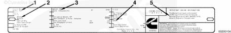 發(fā)動機銘牌顯示你的發(fā)動機的重要信息。發(fā)動機生產(chǎn)序號和控制零件目錄 (CPL) 提供訂購零件和維修的數(shù)據(jù)。未經(jīng)康明斯公司批準(zhǔn)不得擅自變更發(fā)動機銘牌。