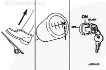 注: 對(duì)于配備有 Prelub 系統(tǒng)的發(fā)動(dòng)機(jī),將鍵固定在”START”(起動(dòng))位置以增大機(jī)油壓力。