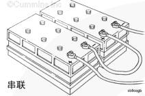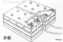 插圖所示為一種典型的蓄電池并聯(lián)連接。這種連接使發(fā)動機(jī)得到雙倍的起動電流。
