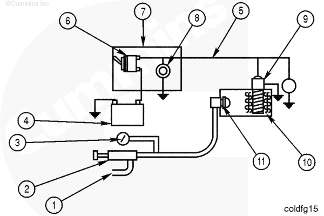 準(zhǔn)備康明斯起動發(fā)動機,檢查燃油供給、冷卻液液位、變速箱或動力輸出裝置是否位于空檔,確定所有的手都接觸不到發(fā)動機。關(guān)閉預(yù)熱塞開關(guān)。(紅色指示燈會熄滅。)20 到 30 秒(預(yù)熱塞加熱所需時間)后,操作加注泵,起動發(fā)動機過程中保持 241 kPa [35 psi] 的燃油壓力。在低于 -34° C [-30°F] 的溫度下需要使用稍高的噴嘴壓力,因為燃油更稠。如有疑問,試起動之前先試用噴嘴。發(fā)動機起動前一般先轉(zhuǎn)幾圈。