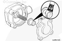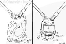 康明斯水泵漏水孔 (1) 處有少量化學(xué)堆積物或出現(xiàn)條紋屬正?,F(xiàn)象。不要維修或更換水泵,除非確認(rèn)確實泄漏。有關(guān)更換問題,請與Cummins® 特約維修站聯(lián)系。