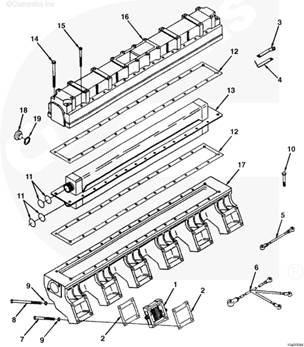 在工業(yè)用 康明斯發(fā)動(dòng)機(jī)上,格柵加熱器安裝在中冷器殼體和缸蓋之間。格柵加熱器提供暖空氣,從而控制發(fā)動(dòng)機(jī)冷起動(dòng)時(shí)的白煙。格柵加熱器的信息在本資料的第 13 節(jié)提供。不帶格柵加熱器的發(fā)動(dòng)機(jī)在中冷器殼體和缸蓋之間有一個(gè)隔套。
