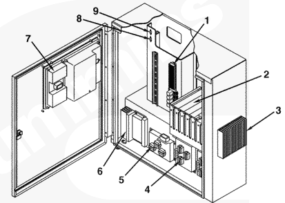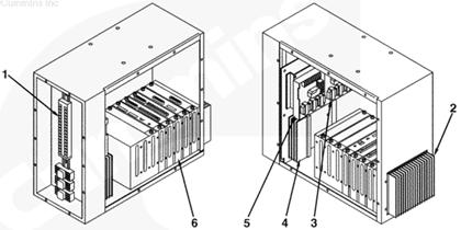 1 TB3,2燃油系統(tǒng)電路板散熱器,3 PT/CT電路板,4電壓調節(jié)器輸出模塊,5總線PT模塊,6插件箱。