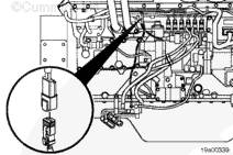 將車輛鑰匙開關(guān)轉(zhuǎn)到斷開 (OFF) 位置。斷開 9-針 Deutsch 噴油泵電氣接頭。不要斷開 2-針 EHAB 裝置接頭