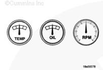儀表標定特性允許 GOEM 安裝的發(fā)動機轉(zhuǎn)速、冷卻液溫度和機油壓力儀表標定至 ECM 儀表驅(qū)動程序(0 至 1 mA)。