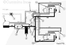 升機型 燃油輸油泵 (4) 從客戶燃油油箱或常用油箱 (1) 中抽出燃油。燃油通過康明斯®或客戶預濾器(2)和燃油連接塊(3)循環(huán)。然后燃油流入燃油輸油泵(4),在輸油泵中增壓,并通過發(fā)動機上的燃油濾清器(5)循環(huán)。燃油流過燃油切斷閥 (6),然后流入噴油泵 (7),噴油泵使燃油達到噴油壓力并在適當?shù)臅r間將燃油輸送到每個噴油器 (9)。