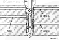 康明斯正時執(zhí)行器和供油執(zhí)行器調(diào)節(jié)后的燃油經(jīng)缸蓋中的供油油道流至噴油器。
