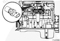 機油壓力傳感器向 ECM 發(fā)送信號,用于發(fā)動機保護系統(tǒng)。該傳感器位于發(fā)動機缸體上。