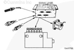 ECM 處理來自傳感器的信息并控制燃油齒條的運動以控制供油。這一動作控制燃油計量,然后根據(jù)最近的發(fā)動機狀態(tài)產(chǎn)生正確的功率和扭矩。