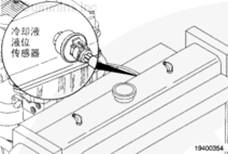 如果配備冷卻液液位傳感器,該傳感器安裝在散熱器頂部水箱中。它是發(fā)動機保護系統(tǒng)所需的一種液位驅(qū)動開關(guān)。