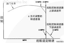 下部調(diào)速率 — 此特性允許實際車速在輕負荷條件下(比如,下坡)從巡航控制速度略微提高。當此特性調(diào)整到其最大值 3 mph 時,車輛的動量得到保留,因而應(yīng)產(chǎn)生更好的燃油經(jīng)濟性。當此特性調(diào)整到其最小值 0 mph 時,車輛控制得到保持。