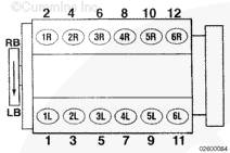 發(fā)動(dòng)機(jī)的點(diǎn)火順序?yàn)?1R-1L-5R-5L-3R-3L-6R-6L-2R-2L-4R-4L。