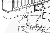 打開散熱器底部水箱的排放旋塞。必要時拆下散熱器下部軟管。排放冷卻系統(tǒng)。參考步驟 008-018。