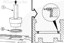 安裝密封件時,零件號必須朝上。使用木錘和節(jié)溫器密封沖頭(零件號 3824716)或等同物。安裝節(jié)溫器密封件時,使其與鑄造邊緣平齊,低于鑄造邊緣頂部不超過 0.51 mm [0.020 in]。