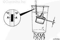 繼續(xù)加熱以檢查節(jié)溫器完全開啟時的溫度。