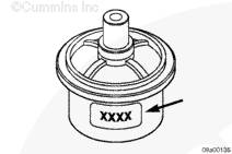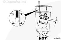 檢查溫度以查看節(jié)溫器設計為何時開啟。該節(jié)溫器設計的溫度為 77°C [170°F]。額定開啟溫度標記在節(jié)溫器的側(cè)面。