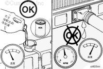 發(fā)動機冷卻液溫度超過正常溫度,限制散熱器的氣流。運轉(zhuǎn)發(fā)動機直到冷卻液溫度升到 90 到 93°C [194 到 199°F]。