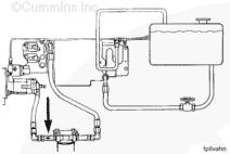 1左排歧管(零件號 3094772),2流至 EHAB 進口(左排供油)的燃油(抽吸未經(jīng)過濾的燃油),3流至右排燃油歧管(右排供油)的燃油(抽吸未經(jīng)過濾的燃油),4自油箱/粗濾器的供油(抽吸未經(jīng)過濾的燃油),5自右排燃油歧管(右排回油)流入的燃油,6流至供油箱的燃油(回油),7自左排 EHAB/噴油泵溢流管和噴油器回油管(兩條管路)的回油。