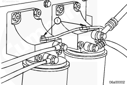 發(fā)電機組/發(fā)電機驅(qū)動燃油布置方案僅采用分離式燃油濾清器座(如下圖所示)。分離式燃油濾清器座可以在燃油濾清器座中使用兩個減壓閥。這可防止在發(fā)動機停機期間,機械輸油泵在燃油切斷閥閉合時繼續(xù)積聚壓力,導致燃油濾清器密封件故障。此外,發(fā)動機傳遞的熱量會使燃油膨脹,壓力增大,因而必須使用減壓閥。