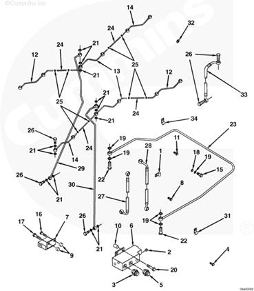 1卡子2管塞堵,3外螺紋接頭,4六角頭螺栓,5外螺紋接頭,6燃油歧管,7燃油歧管,8鼓形管接頭螺釘,9安裝隔套,10安裝隔套,11鼓形管接頭螺釘,12燃油回油管,13燃油回油管,14燃油回油管,15六角頭螺栓,16六角頭螺栓,17六角頭螺栓,18正六角螺母,19密封墊圈,20鼓形管接頭螺釘,21密封墊圈,22鼓形管接頭螺釘,23燃油回油管,24柔性軟管,25卡子,26鼓形管接頭螺釘,27柔性軟管,28柔性軟管,29燃油回油管,30燃油回油管,31卡子,32錐形墊圈,33柔性軟管,34卡子。
