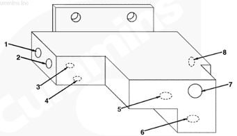 1左排歧管(零件號 3094773),2流至燃油濾清器的燃油(未經(jīng)過濾的增壓燃油),3自燃油濾清器流入的燃油(經(jīng)過濾的增壓燃油),4自右排燃油歧管流入的燃油(未經(jīng)過濾的增壓燃油),5流至右排燃油歧管的燃油 (經(jīng)過濾的增壓燃油),6流至 EHAB/噴油泵進口的燃油(經(jīng)過濾的增壓燃油),7自輸油泵流入的燃油(未經(jīng)過濾的增壓燃油)。