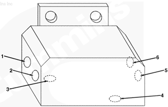 1右排歧管(零件號 3092087),2流至 EHAB 進口的燃油(抽吸未經(jīng)過濾的燃油),3自左排燃油連接塊的燃油(供油)(抽吸未經(jīng)過濾的燃油),4至左排燃油連接塊的回油,5自右排 EHAB/溢流管和右排噴油器回油管的燃油(回油)。