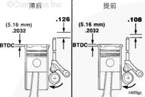 可用的凸輪軸鍵包括不同的規(guī)格(偏移量)。噴油器正時由下列因素控制:凸輪軸鍵的選擇,與凸輪軸齒輪旋轉方向相比,鍵偏移的方向,偏移量。在相同的方位安裝與拆下的鍵相同零件號的鍵。參考第 6 節(jié)中的步驟 006-025。