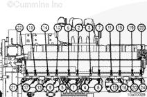 注: 檢查是否有兩個管塞安裝在左排中冷器供應(yīng)管法蘭上。如果沒有安裝,使用 Loctite(零件號 3375066)安裝管塞并擰緊。