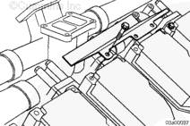 注: 可能需要適度轉(zhuǎn)動空氣跨接管適配器,以便和渦輪增壓器壓縮機(jī)的法蘭對準(zhǔn)。利用 6-mm 螺栓和適配器上的埋頭螺孔進(jìn)行轉(zhuǎn)動。