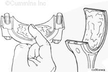 用活塞環(huán)擴張器(零件號 3823137)拆卸活塞環(huán)。