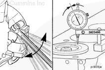 旋轉(zhuǎn)曲軸至上止點。順時針和逆時針轉(zhuǎn)動曲軸,查找千分表最大讀數(shù)。記錄測量結果。