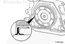 新曲軸后油封不應(yīng)從曲軸后油封承磨襯套上拆下。重新將油封安裝在承磨襯套上時,可能會損壞密封唇。