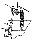 把調(diào)速器或執(zhí)行器終端軸推向油門(mén)“運(yùn)行”的位置至到燃油停止供油操縱桿(4)的平面接觸到同步銷(xiāo)(2). 這就是同步位置或“0”的位置參考點(diǎn). 保持控制杠在這位置當(dāng)進(jìn)行調(diào)整單體泵齒條同步行程.
