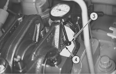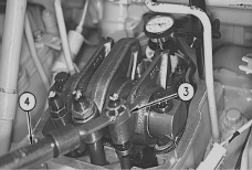 安裝145-5191千分表支架在氣門(mén)蓋底端的螺絲孔(2). 調(diào)整在氣門(mén)過(guò)橋( 4 )上端的接觸表面( 3 ).