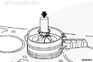 將活塞環(huán)壓縮器頂住缸套。將活塞穿過活塞環(huán)壓縮器推入缸套中。推動(dòng)活塞,直到頂環(huán)完全進(jìn)入缸套。