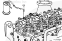 將搖臂總成和軸座安裝到其原來(lái)的位置。確保排氣搖臂安裝了更長(zhǎng)的調(diào)節(jié)螺釘鎖緊螺母。