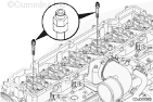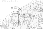 用清潔的機(jī)油潤(rùn)滑螺栓螺紋。將六個(gè)帶有螺紋的隔圈安裝到缸蓋上.扭矩值: 24 n.m [212 in-lb]
