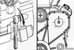 使用盤車工具(零件號 3824591)轉(zhuǎn)動曲軸,使燃油泵齒輪上的標(biāo)記與齒輪室蓋上的上止點(diǎn)標(biāo)記對齊。