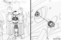 為了減少由于制動(dòng)器搖臂工作間隙不足而造成氣門搖臂軸損壞的可能性,請(qǐng)遵循規(guī)定的螺釘擰緊步驟。氣門搖臂軸的前部有一處機(jī)加工的平面,以提供正確的制動(dòng)器搖臂位置的。因此,必須首先擰緊搖臂軸前部螺釘以控制制動(dòng)器搖臂的位置。安裝氣門搖臂軸之后,必須檢查制動(dòng)器搖臂的工作間隙。