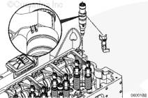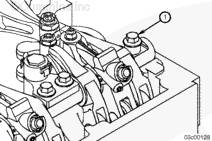 為了減少由于制動(dòng)器搖臂工作間隙不足而造成氣門搖臂軸損壞的可能性,請(qǐng)按規(guī)定的步驟將氣門搖臂軸座合在缸蓋支座(1)上。