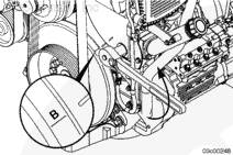 將減振器上的B標(biāo)記與齒輪室蓋上的正時(shí)標(biāo)記對(duì)齊。