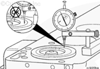 旋轉(zhuǎn)曲軸至上止點(diǎn)。順時(shí)針和逆時(shí)針旋轉(zhuǎn)曲軸,查找千分表最大讀數(shù)。記錄測量結(jié)果。