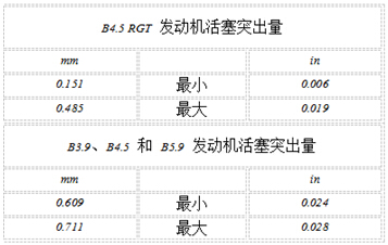 如果康明斯B3.9、B4.5、B4.5 RGT 和 B5.9 發(fā)動(dòng)機(jī)活塞突出量不符合技術(shù)規(guī)范,核實(shí)是否安裝了正確的零件,和/或缸體燃燒面是否機(jī)加工不當(dāng)。參考步驟 001-026。