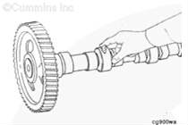 在康明斯B3.9、B4.5、B4.5 RGT 和 B5.9 發(fā)動機(jī)凸輪軸齒輪與曲軸齒輪嚙合之前,檢查凸輪軸是否容易旋轉(zhuǎn)。安裝正確時,凸輪軸必須旋轉(zhuǎn)自如。