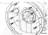 注: 安裝飛輪殼之前,應(yīng)確保所有定位銷位于拆卸飛輪殼時的相同位置。