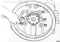 按圖示順序擰緊飛輪殼安裝螺栓。